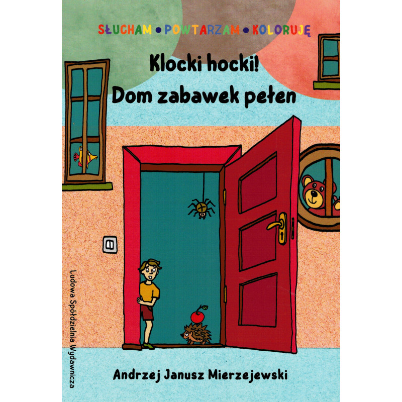 Klocki hocki! Dom zabawek pełen to dziewiąta z kolei książeczka-kolorowanka z autorskiej, dowcipnej i pełnej pogodnego humoru serii SŁUCHAM POWTARZAM KOLORUJĘ adresowanej do dzieci w wieku przedszkolnym.